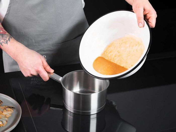 Lấy tôm ra khỏi hỗn hợp nước sốt.