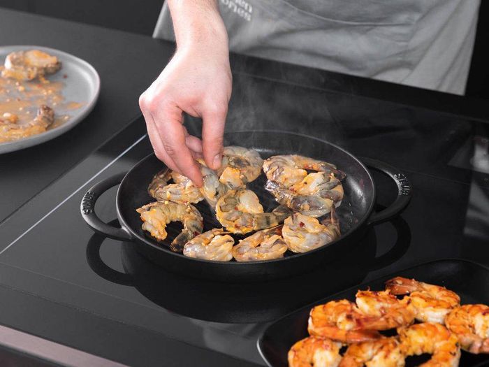 Chuẩn bị chảo nướng thật nóng, quét dầu thực vật và nướng tôm trên mức lửa lớn.