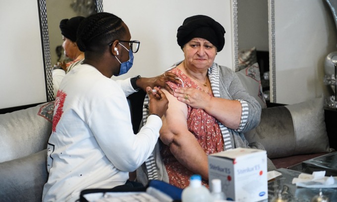 Nhân viên y tế Pháp tiêm vaccine Covid-19 cho một phụ nữ tại nhà ở La Gavotte Peyret ngày 12/1. Ảnh: AFP.