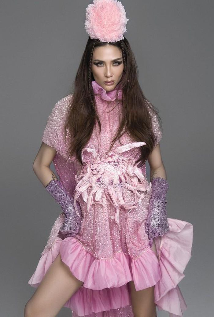 Võ Hoàng Yến thổi hồn vào các bộ trang phục bằng phần tạo dáng khác biệt.