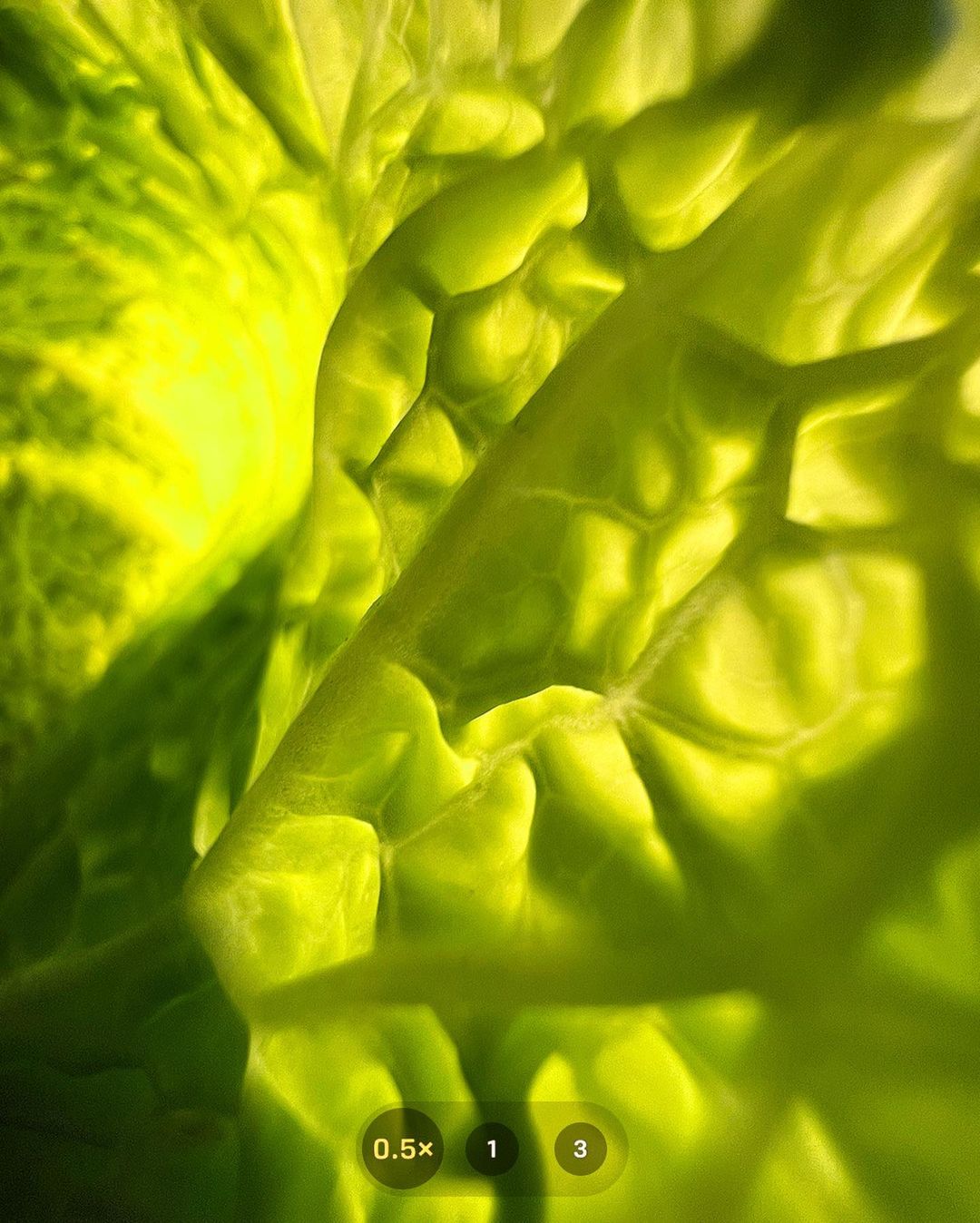 Đây là một lá rau, camera trên iPhone có thể chụp cận cảnh chi tiết từng sợi gân lá