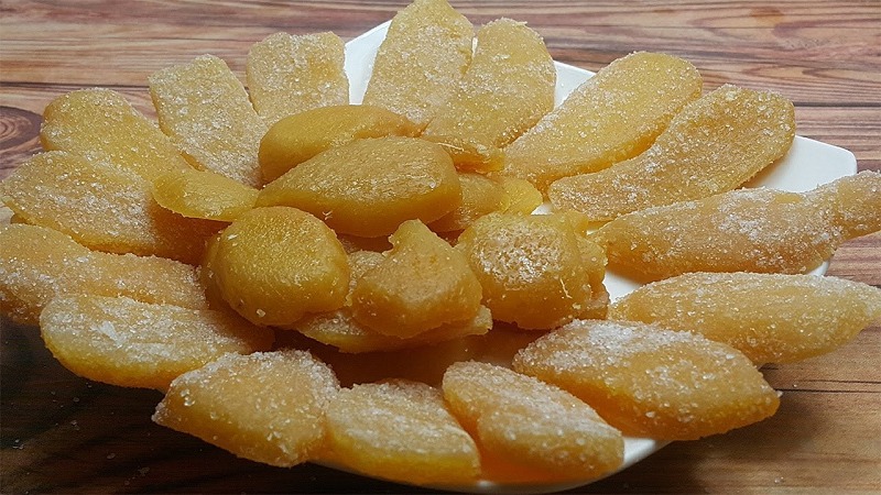 Yêu cầu thành phẩm: Mứt màu vàng đẹp, phủ đều lớp đường trắng kết tinh, khô. Khi ăn, gừng cay nhẹ, thơm ngọt dễ ăn.