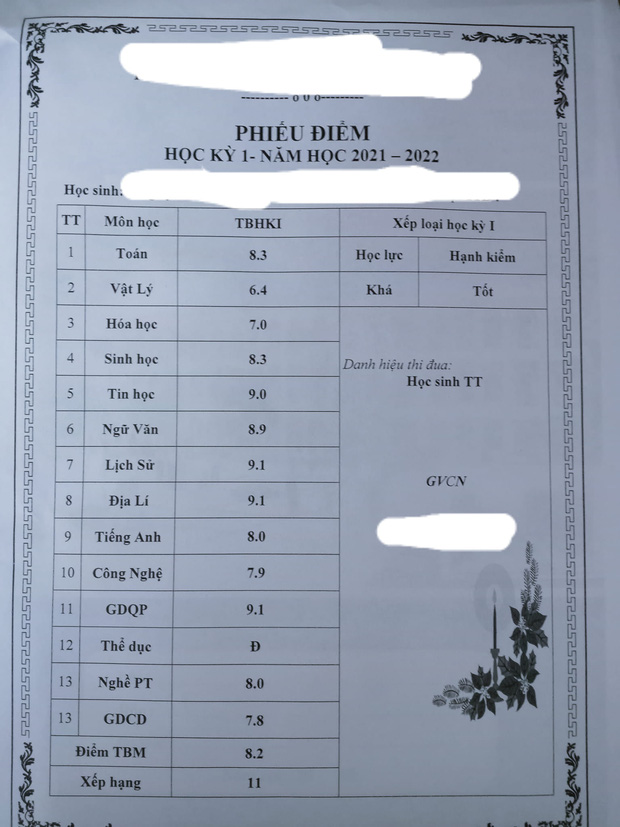 Mới đây, bảng điểm của một nữ sinh được chia sẻ rộng rãi trên mạng, khiến dân tình bàn tán về danh hiệu học sinh Tiên tiến của cô bạn. Mặc dù có điểm trung bình các môn khá cao là 8,2, xếp loại Hạnh kiểm tốt, ấy vậy mà cô bạn vẫn không đạt được mục tiêu đã đề ra.