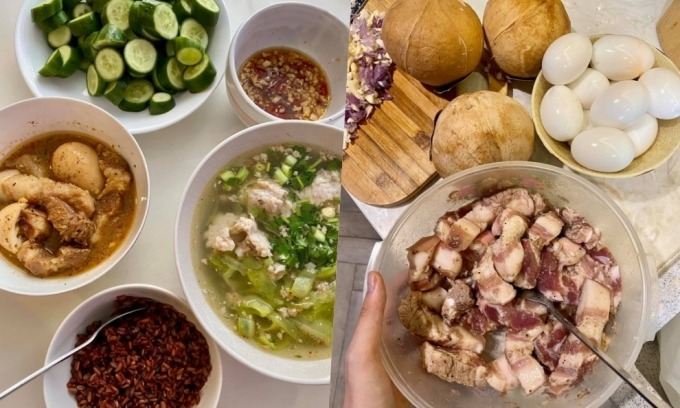 Tương tự Kỳ Duyên, Bảo Thy cũng kho thịt với nước dừa nhưng cô chọn thành phần gồm trứng cút và thịt heo nhiều nạc, ít mỡ ăn cho đỡ ngấy.