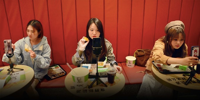 Livestreamers quảng cáo các sản phẩm thịt làm từ thực vật của KFC, tại Thượng Hải, ngày 27/4/ 2020. Ảnh: People Visual