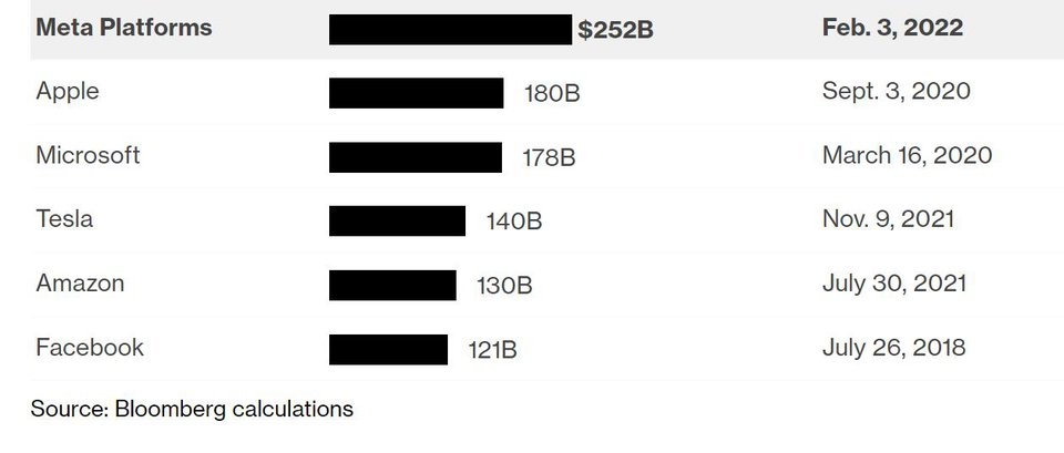 Theo Bloomberg, cú lao dốc của Meta Platforms ngày 3/2 là đợt sụt giảm trong ngày nặng nề nhất trong lịch sử thị trường chứng khoán Mỹ. Trên thực tế, Facebook vẫn lãi lớn, lợi nhuận ròng đạt 39 tỷ USD năm 2021, tăng 35% so với một năm trước đó.