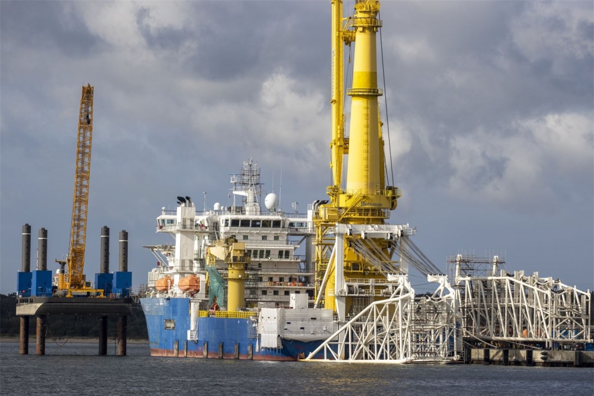 "Dòng chảy phương Bắc 2" neo tại cảng Mukran, gần Sassnitz, Đông Bắc Đức. Ảnh: AFP
