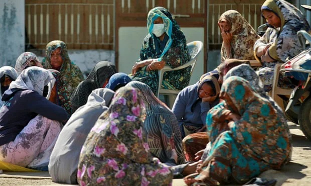 Người thân của gia đ́nh Patels bàng hoàng trước sự mất mát này tại nhà riêng của gia đ́nh họ ở Dingucha, Ấn Độ. Ảnh: Reuters.