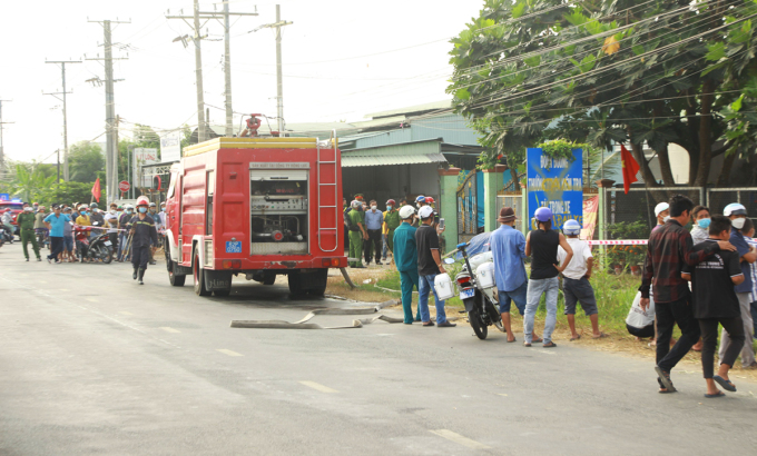 Cảnh sát cùng xe cứu hỏa đến hiện trường dập tắt đám cháy. Ảnh: Nam An