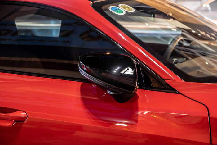Chiếc Audi e-tron GT tại Việt Nam là phiên bản tiêu chuẩn, sở hữu màu sơn đỏ ở ngoại thất, trong khi phần đầu được trang bị tùy chọn sơn đen.