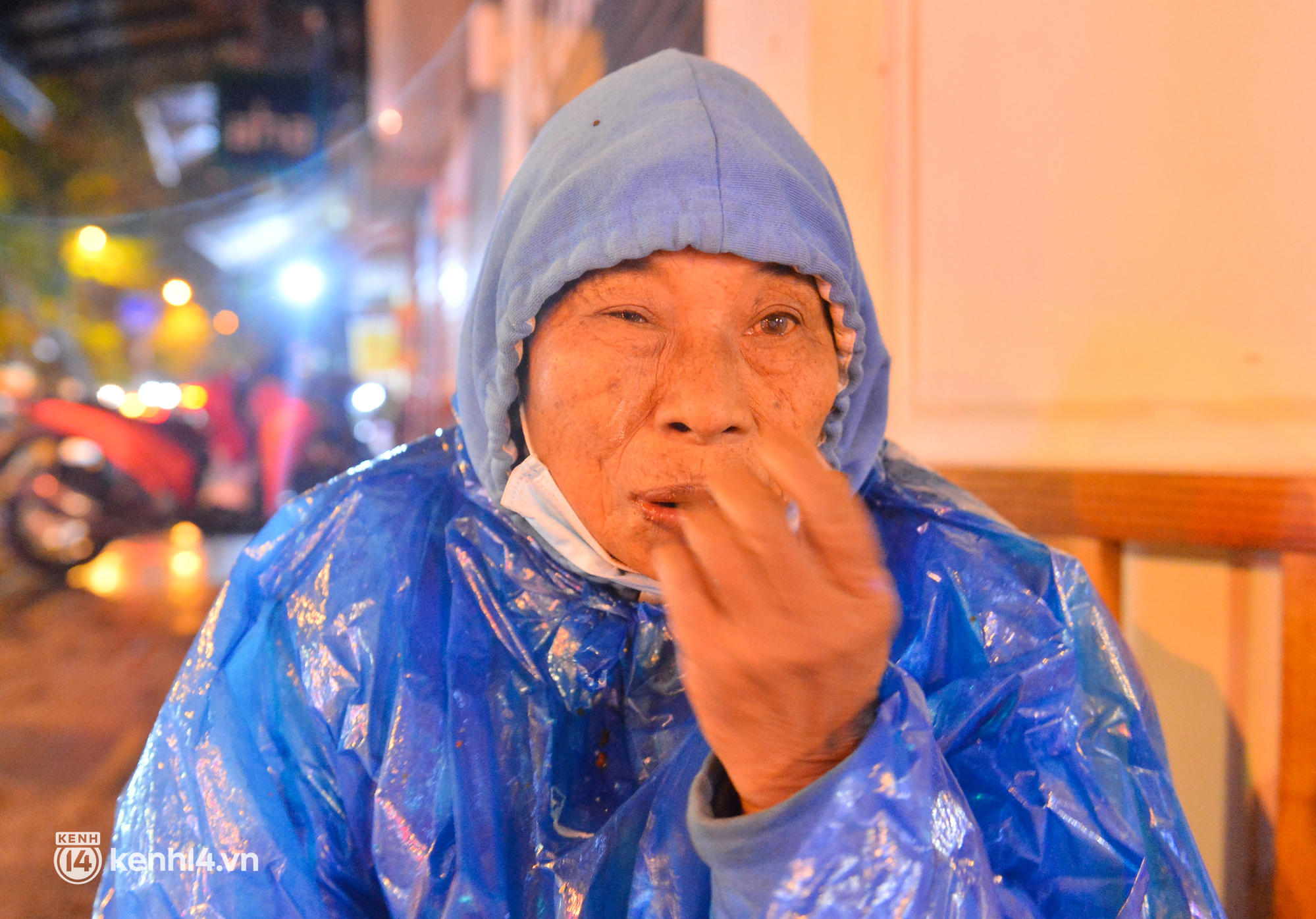 "Tối nào tôi cũng phải ngủ ở vỉa hè, trời rét như này mà chẳng có chăn, gối nên mặc tạm áo mưa tránh rét. Mấy hôm nay trời lạnh cũng chẳng nhặt được gì, ngồi đây đợi người ta đi qua giúp đỡ thôi", bà Thà tâm sự.