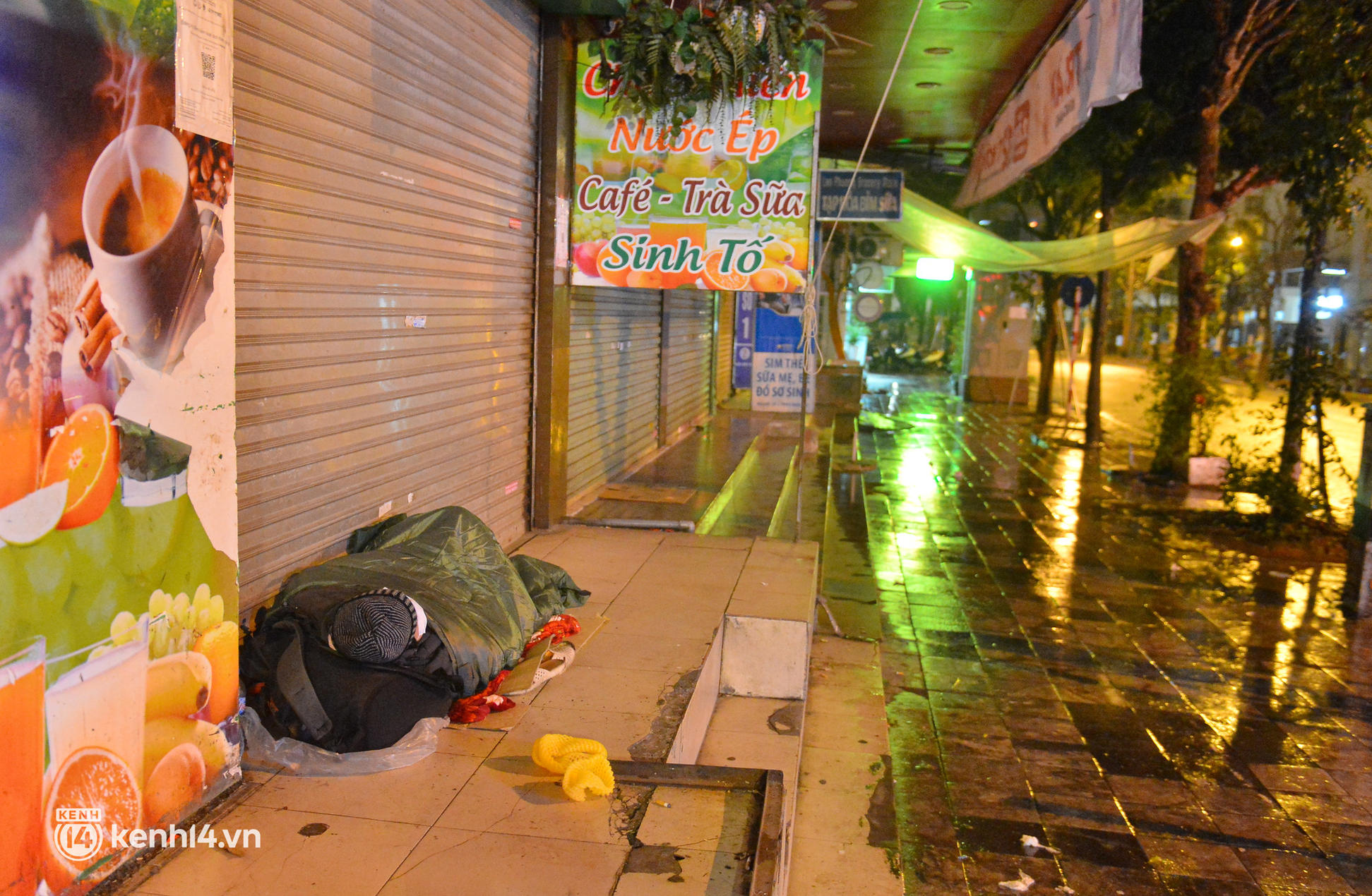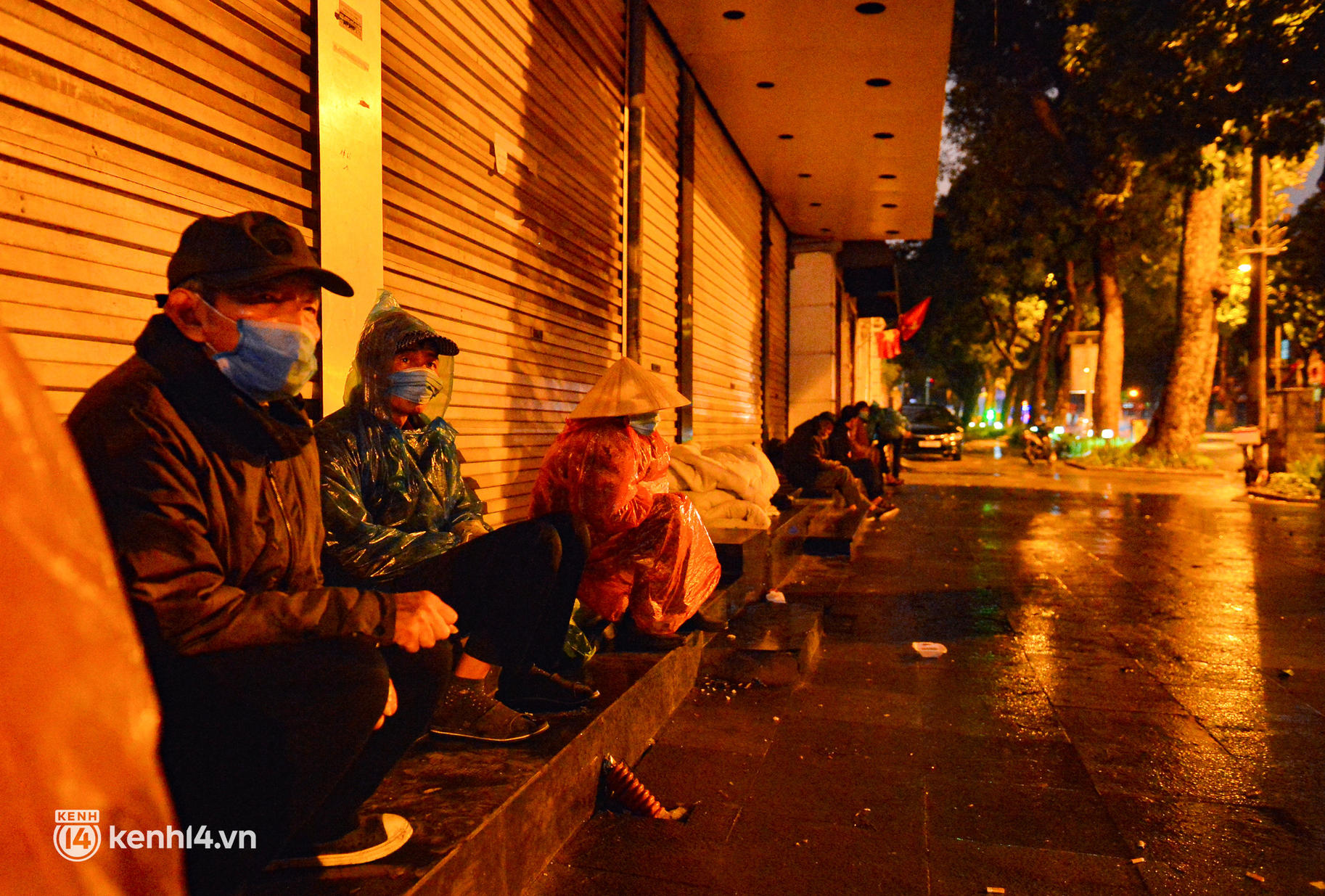 23h đêm trên phố Tràng Thi, Phủ Doãn, những người vô gia cư bắt đầu kéo chăn, nệm, ngủ trên vỉa hè. Trong số họ, một số người không có chăn, gối, họ đành chỉ mặc áo mưa, ngồi dúm dó một góc để tránh rét.