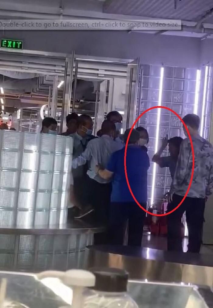 Vụ tranh cãi tại sảnh thương mại khiến nhiều người hiếu kỳ, tò mò đứng xem. Để tránh ẩu đả xảy ra, một nhóm bảo vệ khoảng 3-4 người đã chạy lại can ngăn nhóm người.