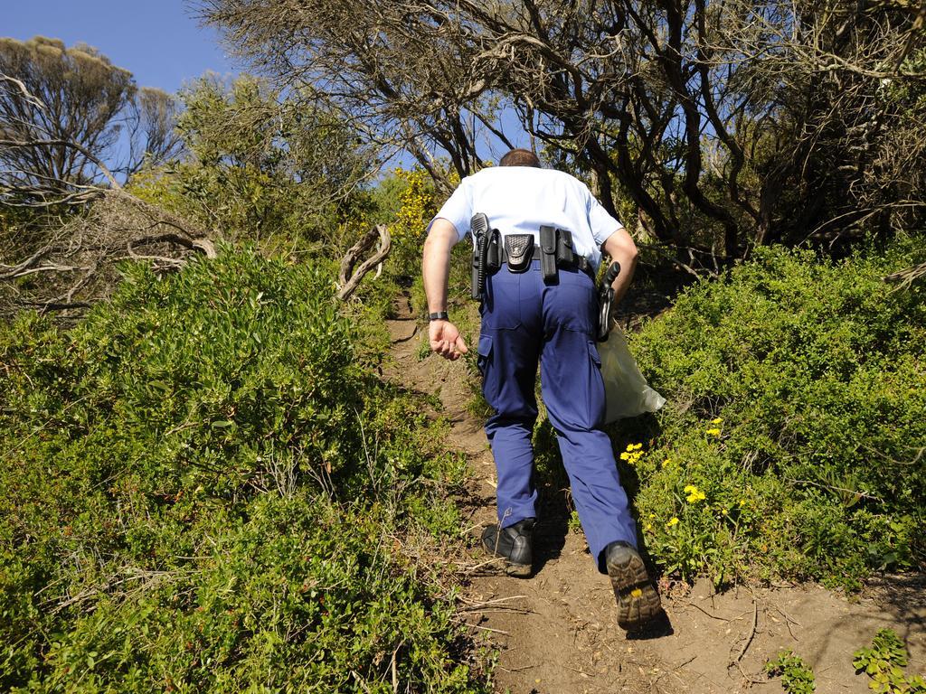 Một cảnh sát địa phương đang tiến hành tuần tra quanh khu vực bãi biển Sunnyside North