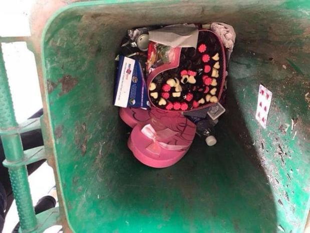 Với một món quà mang tính biểu tượng lễ tình nhân như socola, việc “hạ cánh” ở thùng rác khiến cho netizen có nhiều dự cảm chẳng lành: