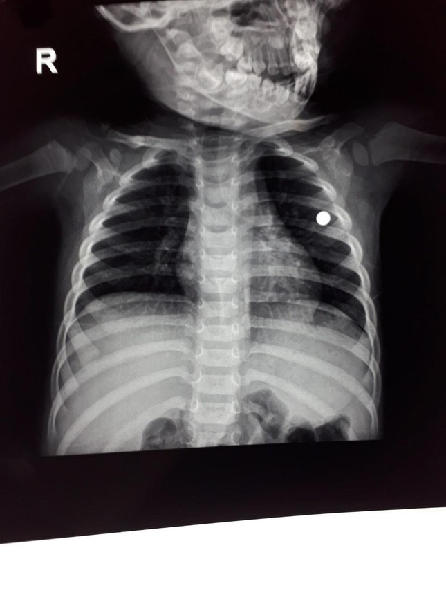Viên đạn trong ngực trái của cháu bé. Ảnh do Bệnh viện Nhi Thanh Hoá cung cấp