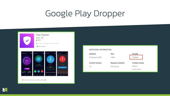 Theo báo cáo của Sensor Tower, Fast Cleaner xuất hiện trên Google Play từ cuối tháng 1-2022, và hiện ứng dụng đã trở nên phổ biến ở Bồ Đào Nha và Tây Ban Nha. Trước đó vào tháng 11, ứng dụng giả mạo GymDrop cũng được phát hiện phát tán phần mềm độc hại Alien trên Google Play với hơn 10.000 lượt cài đặt.