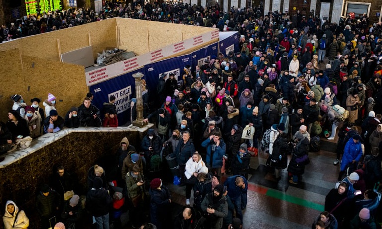 Ga tàu ở Kiev luôn chật kín người những ngày lực lượng Nga áp sát thủ đô Ukraine (Ảnh: Guardian).