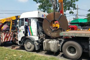 Ngày 15-3, một xe đầu kéo kéo theo rơ moóc chở cuộn sắt nặng hơn 20 tấn, chạy trên đường Nguyễn Văn Linh, hướng từ khu chế xuất Tân Thuận quận 7, TP.HCM. Khi ra tới quốc lộ 1 thì cuộn sắt bất ngờ đè trúng cabin xe đầu kéo.