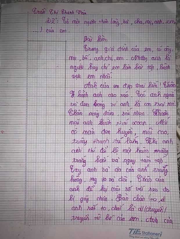 Mới đây, dân mạng được dịp cười ra nước mắt trước một bài văn miêu tả anh trai của một cô bé tiểu học.