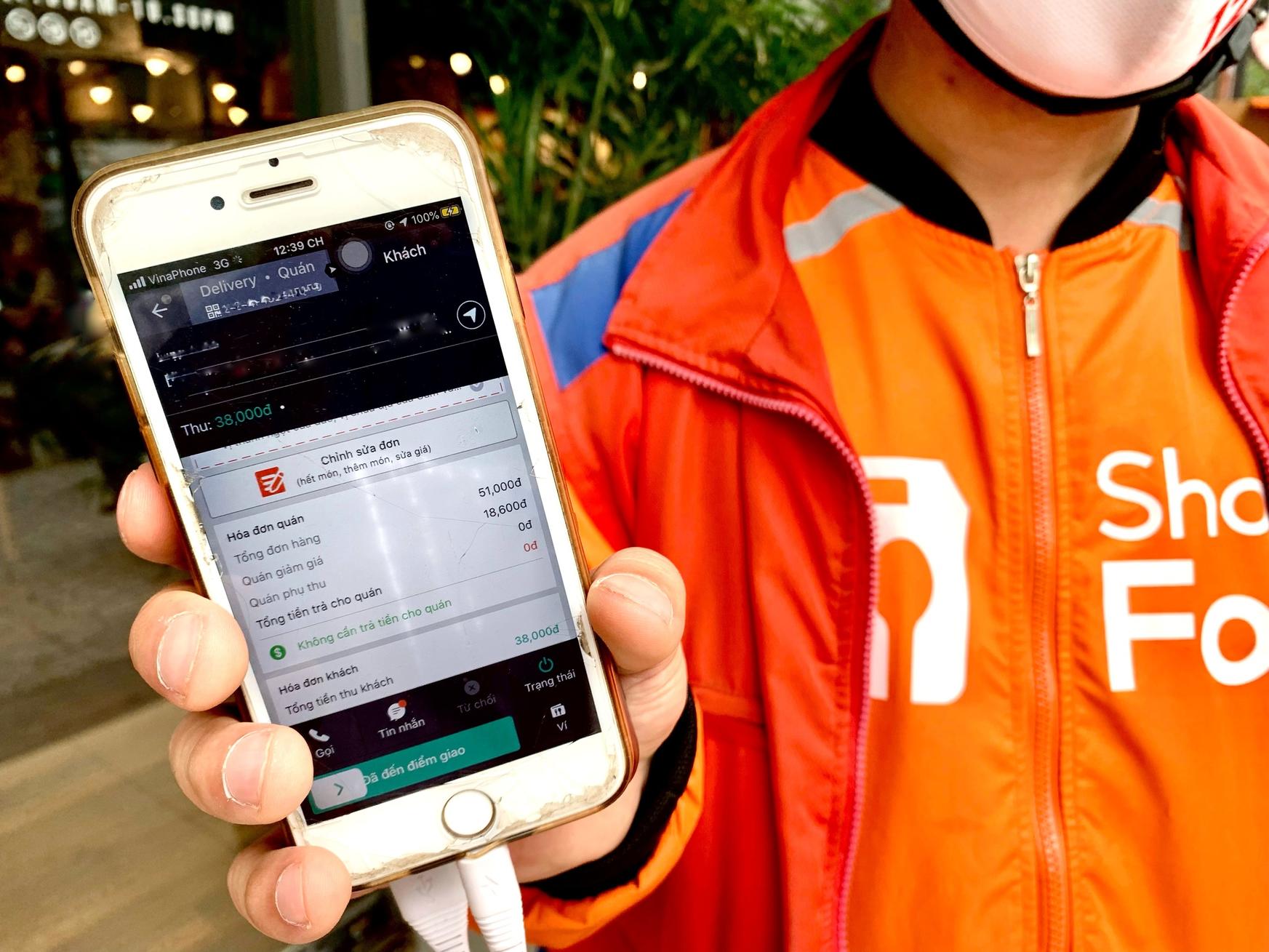 "Nổ đơn GrabFood đi lấy mất 1,5 km, khoảng cách giao 2,98 km nữa là 4,48 km. Thời gian chờ quán làm đồ 15 phút. Thu nhập về tay 11.636 đồng", tài xế Mai Hường chia sẻ.
