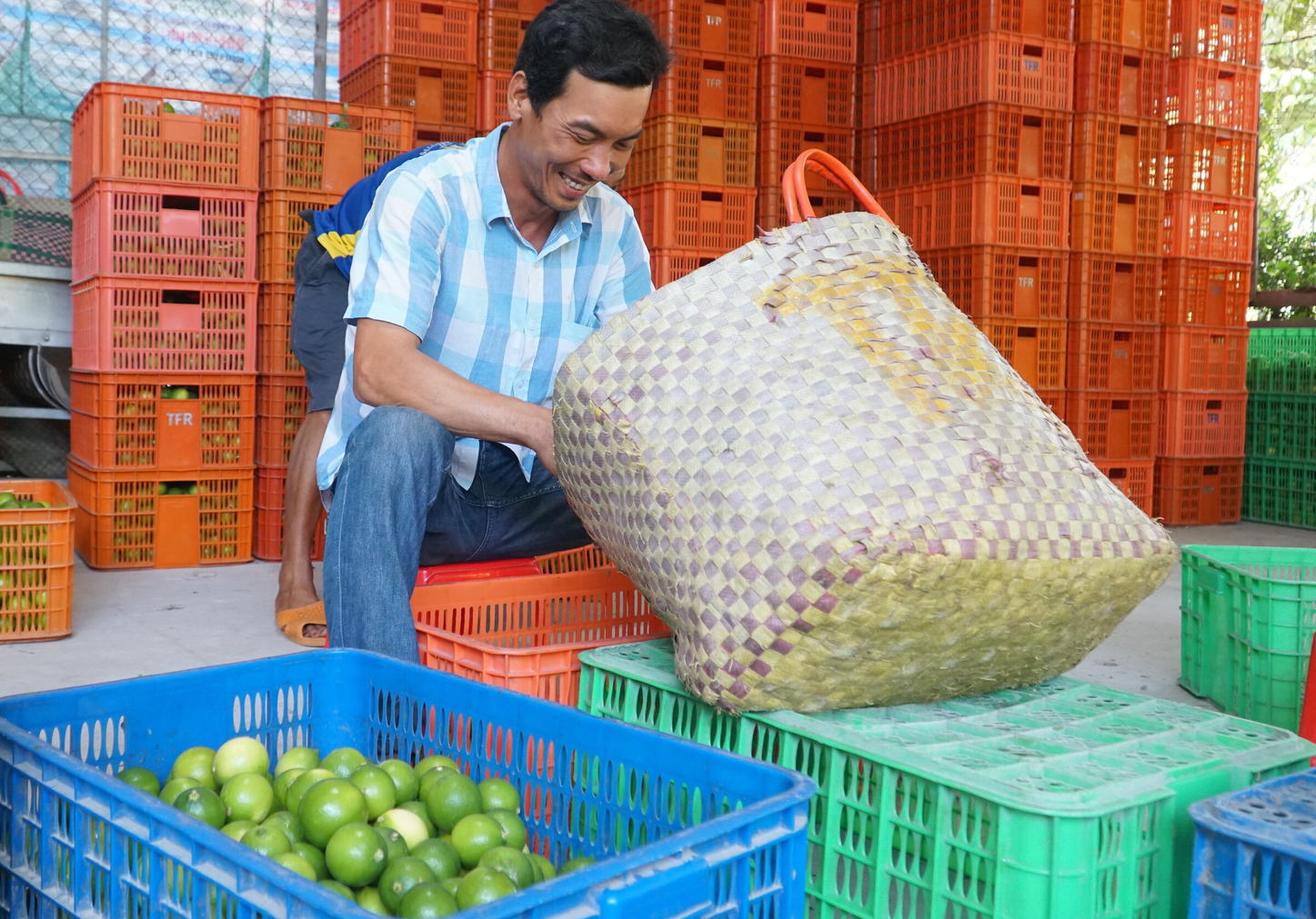 Chanh ở đây được nông dân chở trong những giỏ to, khi tới vựa không tiếp xúc mặt đất mà phải bắt ghế để lên. Anh Lương Như Ý, Phó giám đốc HTX lý giải việc tránh tiếp xúc mặt đất để giảm lây nhiễm chéo sinh vật gây hại hoặc các loại thuốc bảo vệ thực vật. "Nền đất nhiều người qua lại có thể còn dính thuốc đâu đó, nếu còn dư lượng thuốc bảo vệ thực vật trong chanh là chết liền", anh Ý nói.