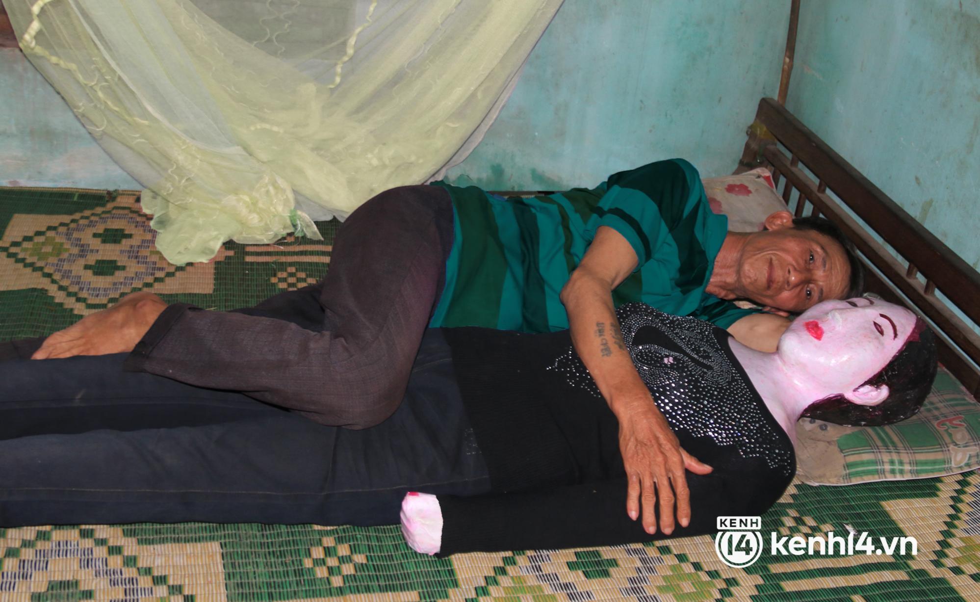 Theo ông Vân, hơn 4 năm nay phải ngồi xe lăn do bị đau cột sống, nhưng hàng ngày, mình vẫn chăm chút và ôm bức tượng chứa hài cốt của người vợ quá cố để ngủ.