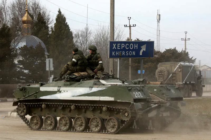 Binh lính Nga tại thị trấn Armyansk trên bán đảo Crưm khi Tổng thống Putin tuyên bố mở chiến dịch quân sự đặc biệt vào Ukraine ngày 24/2. Ảnh: Reuters