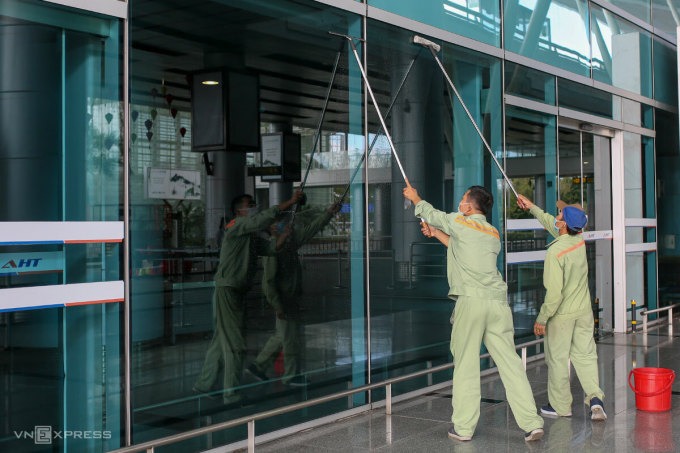 Nhân viên duy tu, bảo dưỡng nhà ga quốc tế, tháng 1/2022. Ảnh: Nguyễn Đông