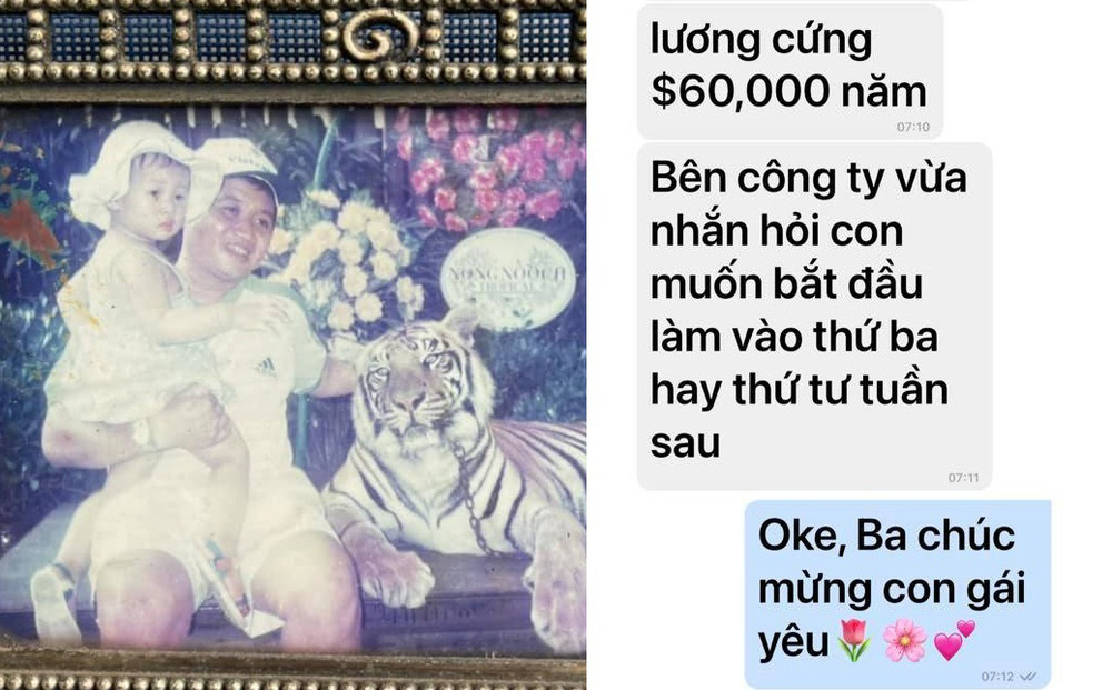 Trong đoạn tin nhắn giữa hai cha con, ông Hải gọi con bằng biệt danh thân mật - "Su yêu". Con gái ông Hải cho biết, cô sẽ bắt đầu làm công việc phân tích nghiên cứu thị trường ở xứ cờ hoa. Bên phía công ty đưa ra thông báo rằng cô có thể bắt đầu vào thứ 3 hoặc thứ 4 tuần kế tiếp.