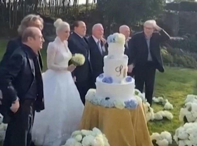 Truyền thông Italy chia sẻ đoạn video về "đám cưới tượng trưng" của ông Berlusconi với nghị sĩ Marta Fascina tại Villa Gernetto.