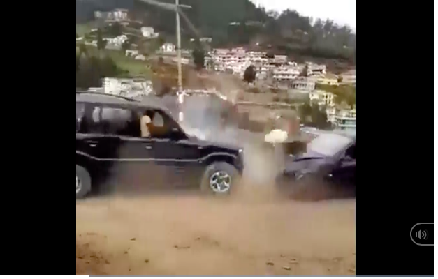 Hình ảnh ghi lại được từ camera giám sát cho thấy, có hai chiếc xe ô tô đang lưu thông trên đường thì bất ngờ đâm thẳng vào nhau.