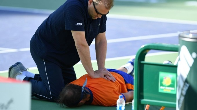 Nadal phải gọi chăm sóc y tế nhiều lần trong hai trận cuối ở Indian Wells. Ảnh: ATP