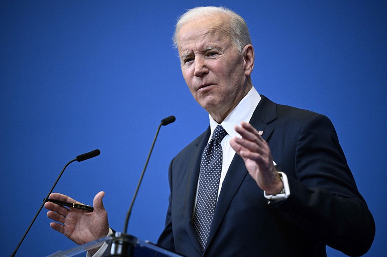 Tổng thống Mỹ Joe Biden phát biểu tại họp báo ở trụ sở của NATO tại Brussels, Bỉ hôm 24/3 (Ảnh: AFP).
