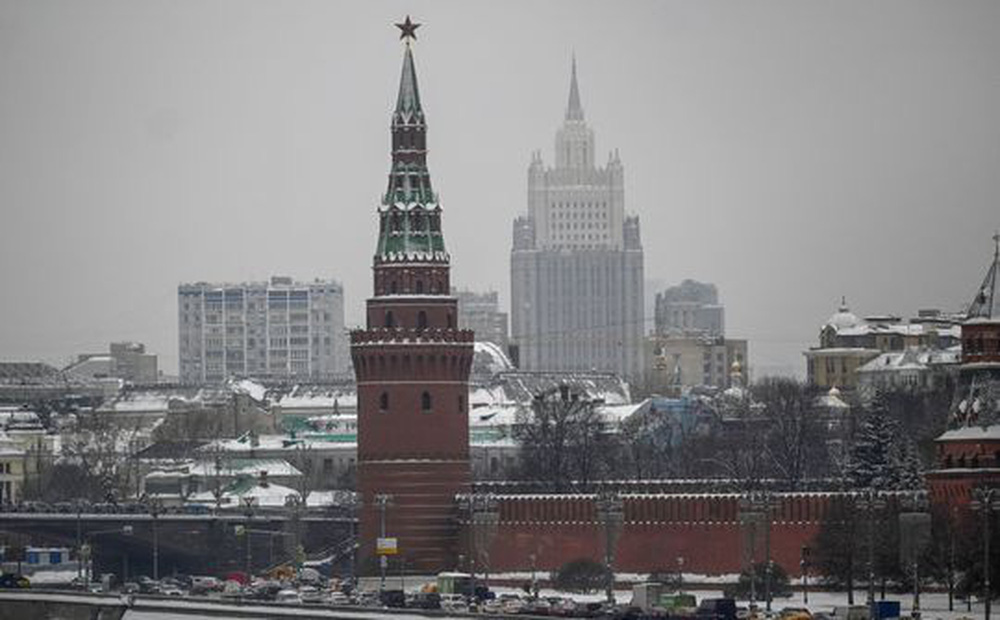 Tháp Vodovzvodnaya của Điện Kremlin (trái) và tòa nhà Bộ Ngoại giao Nga (phải) ở Moskva. Ảnh: AFP