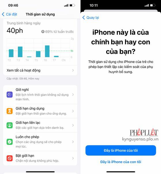 Cách kích hoạt tính năng Screen Time (thời gian sử dụng) trên iPhone. Ảnh: MINH HOÀNG