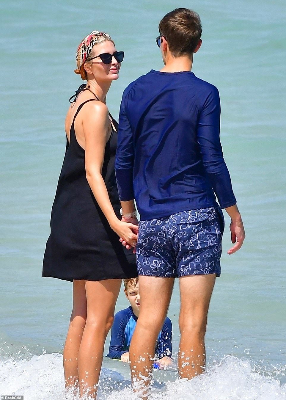 Cựu cố vấn cấp cao của Nhà Trắng thể hiện tình cảm công khai với chồng giữa bãi biển đông người. Cả hai nắm tay và ôm hôn khi đứng ở mép nước, ngắm các con chơi đùa.