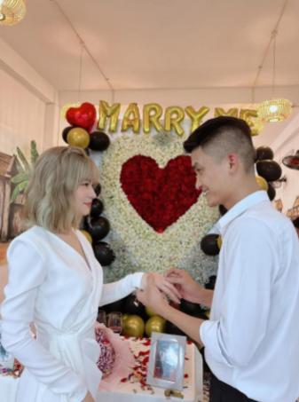 Bà xã Mạc Văn Khoa đã chia sẻ khoảnh khắc hạnh phúc trên trang cá nhân khi được nam nghệ sĩ cầu hôn.