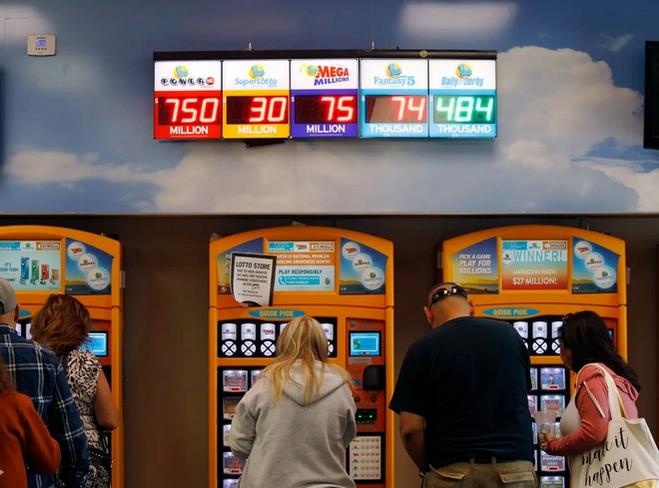 Người dân mua vé số tại một máy bán vé tự động tại Mỹ. Ảnh: AP