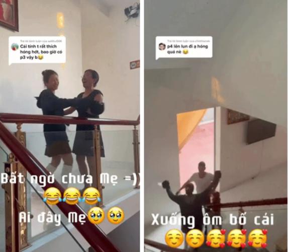 Quanh quẩn, đi tới đi lui cạnh mẹ một hồi, cô gái liền quyết định tháo khẩu trang và mũ của mình ra. Ngay lập tức, khi thấy cô con gái đã xa cách mình 3 năm sau thời gian dài đi du học, người mẹ đã không nén nổi sự xúc động mà chực trào nước mắt tại chỗ. Hai mẹ con dành cho nhau những cái ôm tình cảm mà đã lâu rồi họ chưa có.