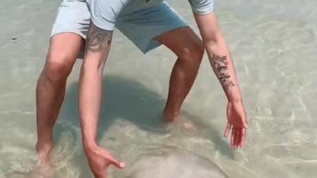 Một nam thanh niên chỉ là đi ra bờ biển chơi thôi mà 1 chàng trai đã bắt được được cả 1 "cục thạch khổng lồ".