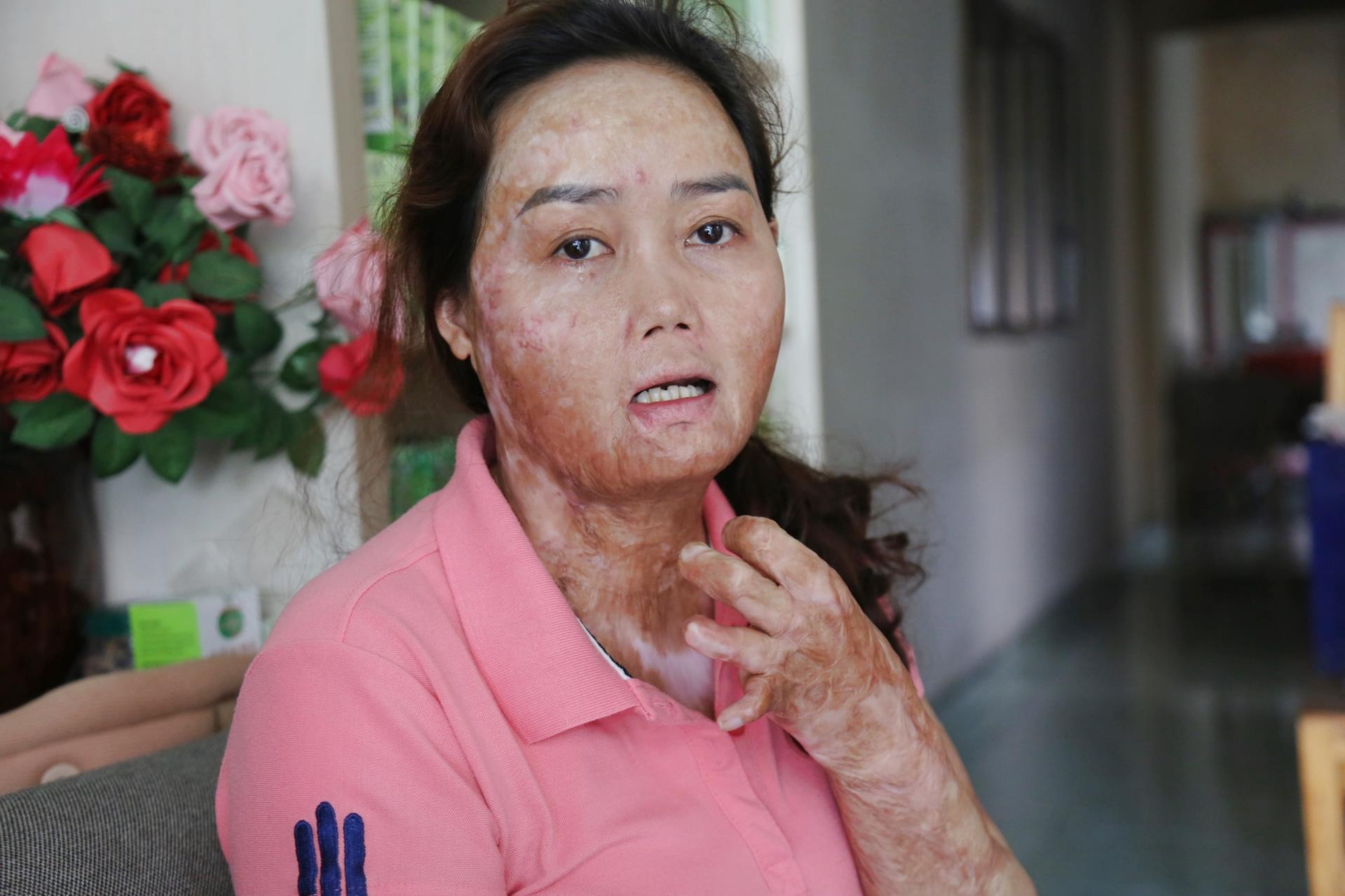 "Nhiều người hỏi sao mà chị vượt qua được, nó thật sự không dễ dàng. Nhưng mà vì con, chị phải tiếp tục sống, chị bỏ cuộc rồi mấy đứa nhỏ ai lo…", chị Ngân đưa đôi bàn tay không lành lặn, sờ vào những mảng da thịt lồi lõm khắp người, đau đớn.