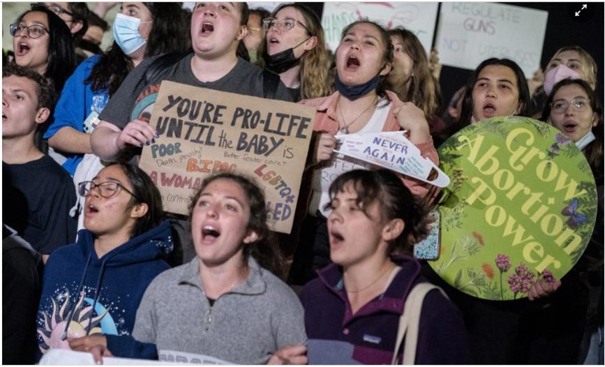 Hàng trăm người biểu tình đổ đến trước thềm Tòa án Tối cao Mỹ. Vào ngày 3/5, những người ủng hộ quyền lựa chọn trong việc phá thai đã tập trung trước Tòa án Tối cao Mỹ sau khi có tin tức rò rỉ về việc luật phá thai có thể bị đảo ngược.