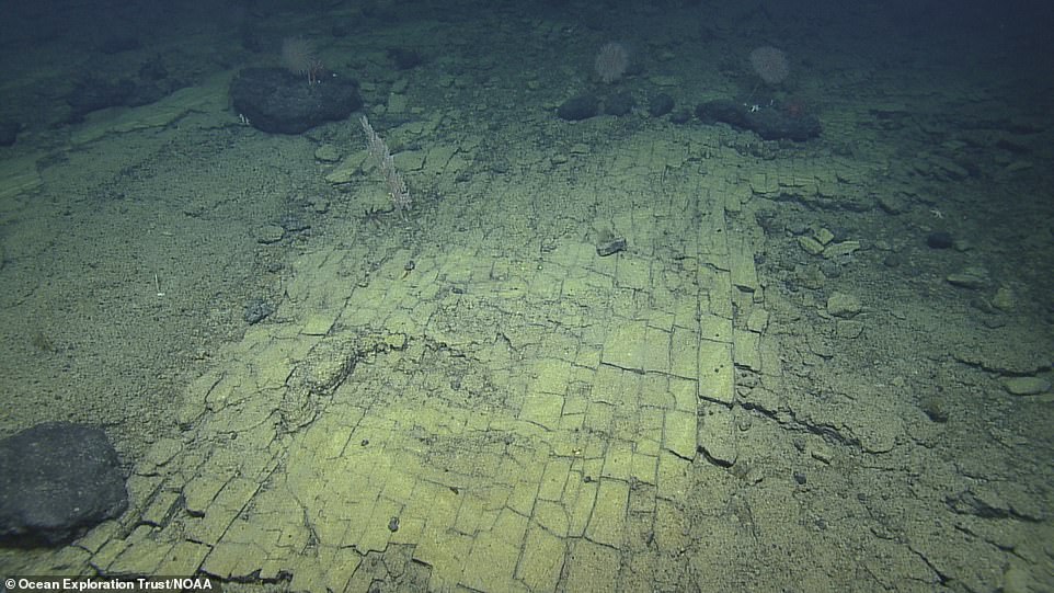 Sử dụng tàu thám hiểm Nautilus, các nhà nghiên cứu phát hiện địa hình đáy biển giống như một con đường được lát bằng các viên đá màu vàng.