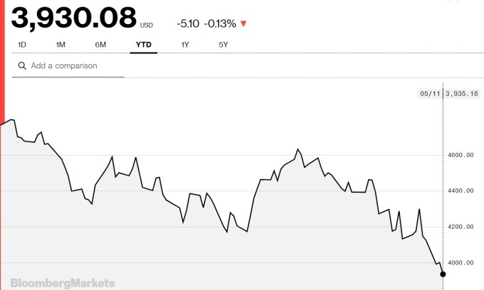 Từ đầu năm, chỉ số S&P 500 đã giảm gần 18%. Sau phiên giảm 0,1% hôm qua, chỉ số này càng tiến gần thị trường giá xuống (giảm 20% từ đỉnh gần nhất). Tổng cộng, hơn 7.000 tỷ USD vốn hóa đã bốc hơi khỏi các cổ phiếu trong S&P 500.