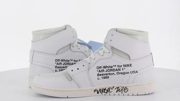 Đôi Nike x Off-White Air Jordan 1 có chữ ký của Virgil Abloh được bán với giá cao. Mẫu sneakers ra mắt vào năm 2018.