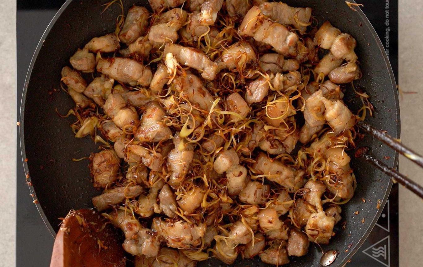 Sự kết hợp giữa thịt ba chỉ heo cùng sả xắt nhỏ mang lại cho bạn món ăn đẹp màu, đậm vị và khiến cả gia đình phải tốn cơm.
