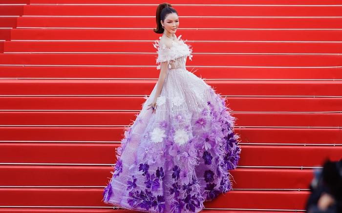Trong ngày đầu xuất hiện tại LHP Cannes, Lý Nhã Kỳ chọn trang phục lấy cảm hứng từ hoa oải hương được đính kết hàng ngàn viên đá pha lê.