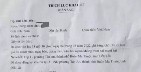 Ngày 21-5, ông Nguyễn Ngọc Nha - Phó chủ tịch UBND phường Tân An, TP Buôn Ma Thuột, tỉnh Đắk Lắk, cho biết đơn vị đang làm rõ việc người mẹ đã tự ý đến phường khai tử cho con trai 3 tuổi vẫn còn sống và chỉ đạo thu hồi giấy khai tử không đúng này.