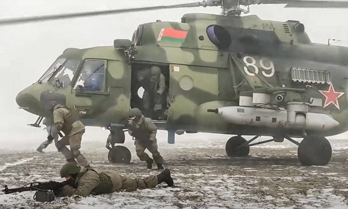 Binh sĩ Nga và Belarus tham gia một cuộc tập trận hồi đầu tháng 2. Ảnh: AFP.